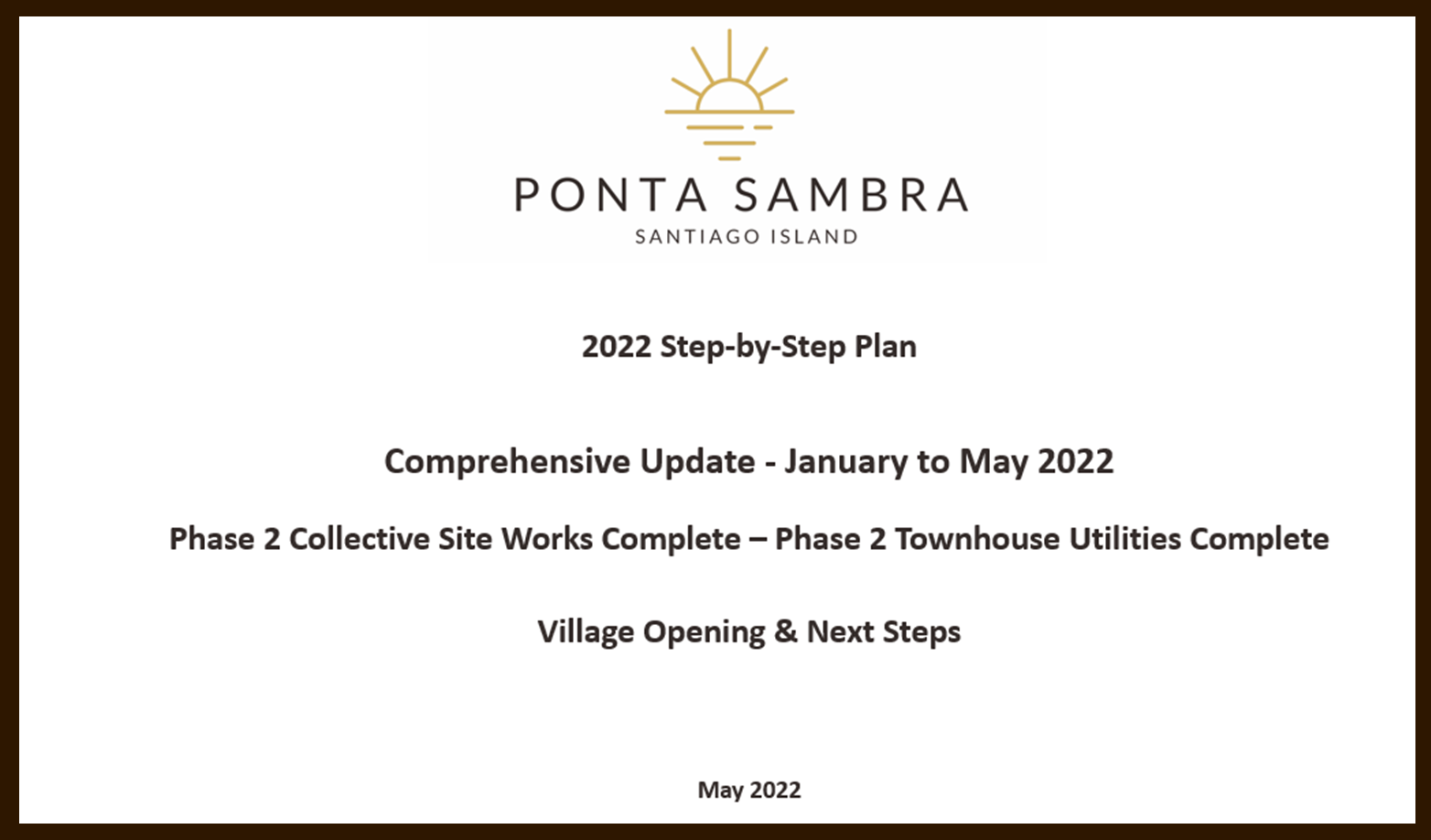 May Progress Update To view and download a comprehensive update on progress with the 2022 Step-by-Step Plan please click on the image below:-